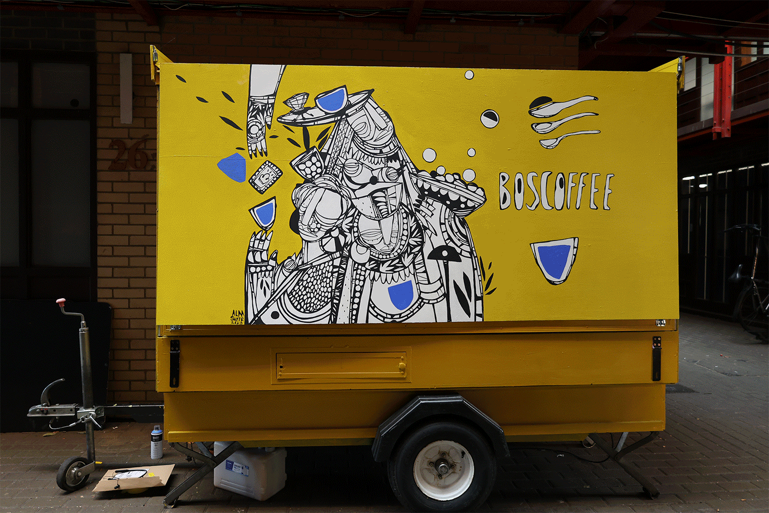 Alaa first held a workshop with the young people at BOSCO where they could create their own designs for the coffee trailer. Alaa spent weeks hand-painting a new eye-catching design inspired by the young people but true to her artistry.