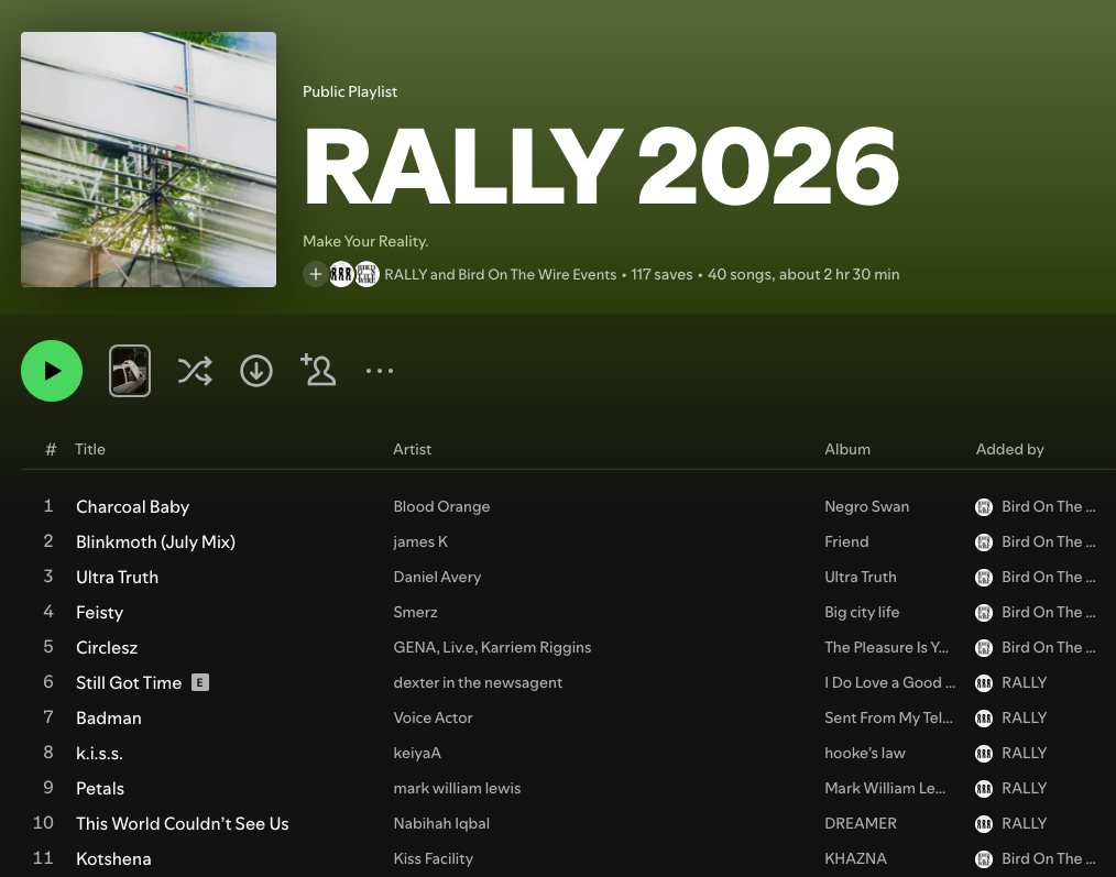 Load it up! The RALLY 2026 playlist has arrived.