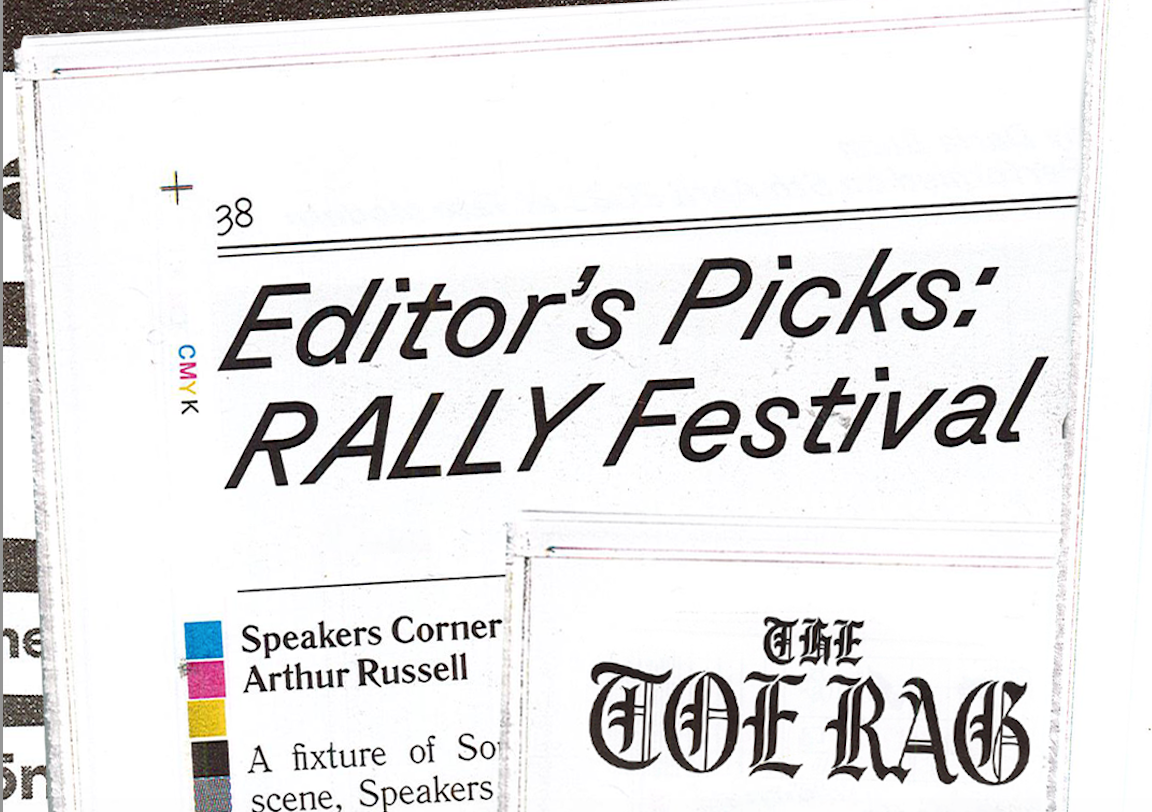 The Toe Rag is a quarterly print magazine covering contemporary culture, spanning visual art, music, architecture, theatre, performance, fashion, politics and literature. Founded in December 2023, they publish work that is formally ambitious, considered and incisive. Issues feature essays, reviews, interviews, fiction, poetry and art, back pages include event listings, puzzles, games, an agony aunt and a Page 3.